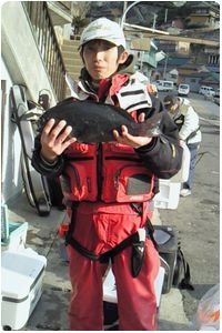 | (姫島まわりのカメバエでグレを釣った中山さん) |