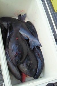 釣果、タテバエでグレ11匹(佐竹さん)、sizeは30~40センチぐらい。