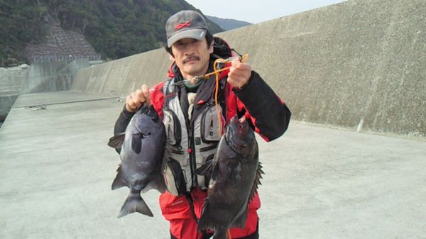 釣果、一ツバエでイシダイ2匹(65センチ、46センチ)ビゼンのトーフでグレ3匹。上物は、今ひとつだったようです! |