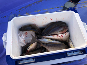 穴の口ーグレ40㎝4尾。カンパチ45㎝~50㎝1尾。