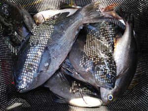 ヨウチエンでグレ45センチ〜3匹、イサギ12〜13